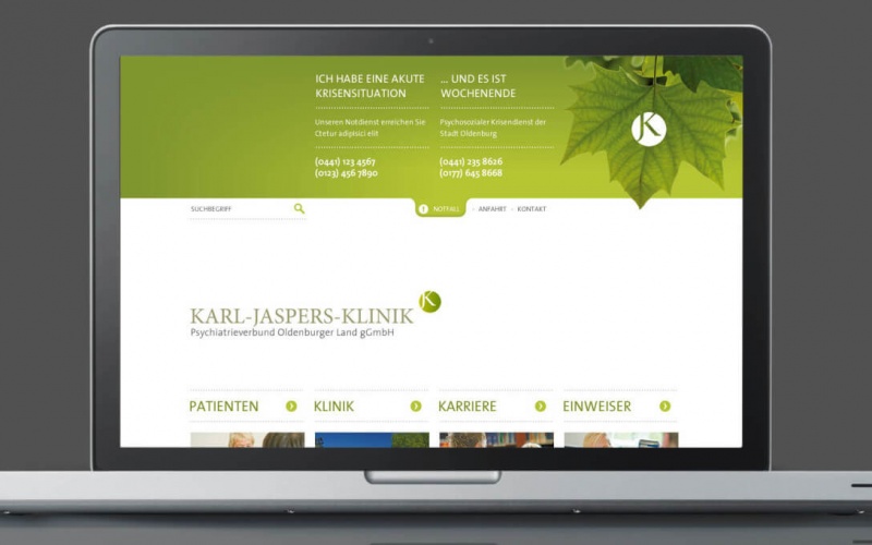 Karl-Jaspers-Klinik(KJK)是美国一家精神病学和心理治疗的专科医院。在1858年,以今天看来奇怪的名字命名的“圣诞节治疗中心”正式开放。2008年 Stockwerk2获得了一项任务,用一个新的 CI/CD 战略来支持当时迫切需要的形象转变。在过去的几年里,社会对心理疾病的接受程度明显提高。尽管如此,我们认为这是一个重要的任务,伴随着 KJK 的精彩工作,使得诊所“高高在上”的定位成为可比较的设施。 从印刷媒体和在线媒体的发展到的定位系统,这个系统已经开始向外国发展。